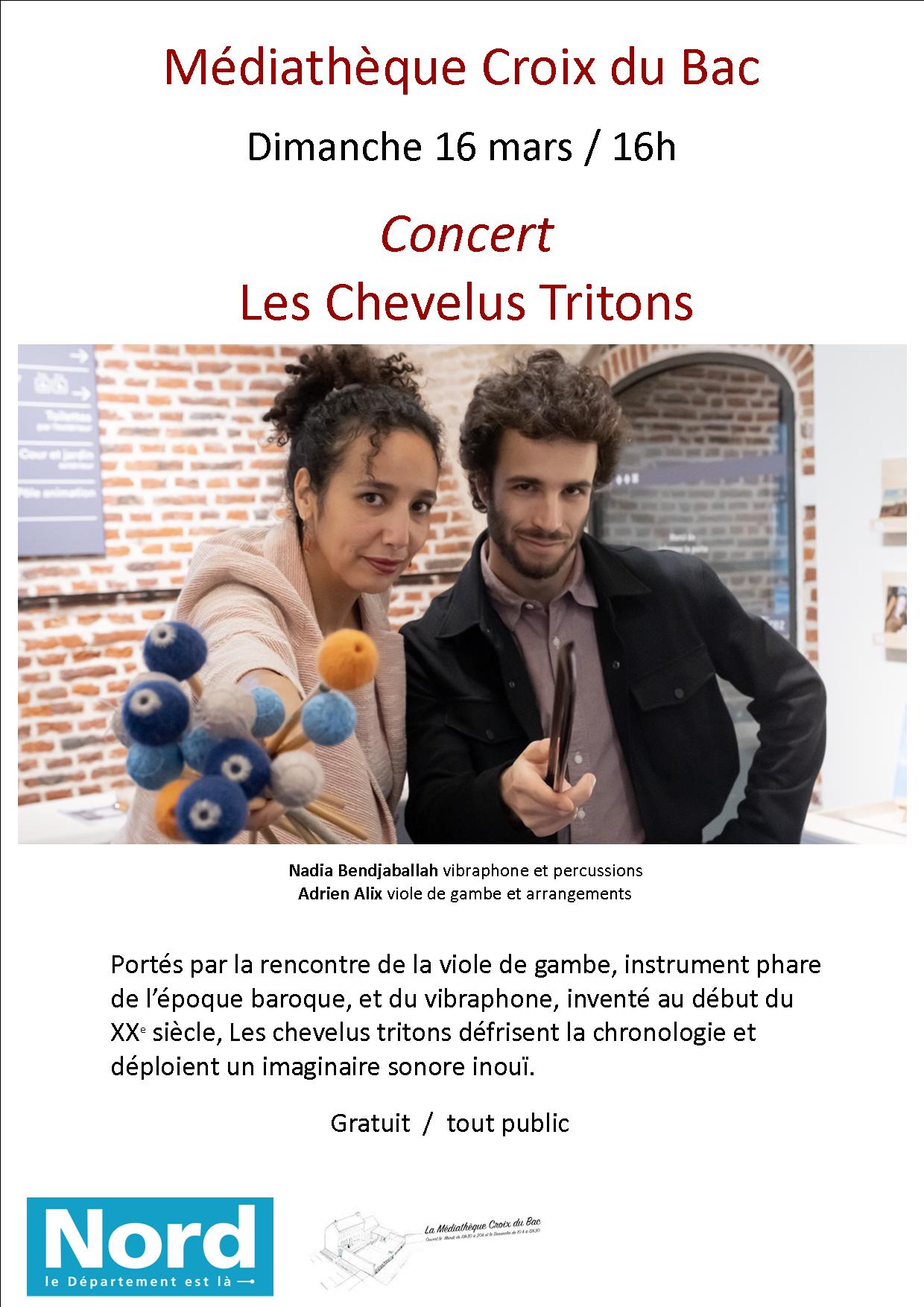 le dimanche 16 mars avec Nadia Bendjaballah vibraphone et percussions, Adrien Alix viole de gambe et arrangements, les deux musiciens proposeront leur vision musicale des Flandres