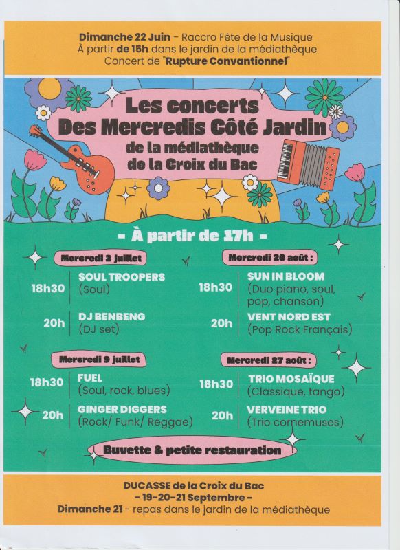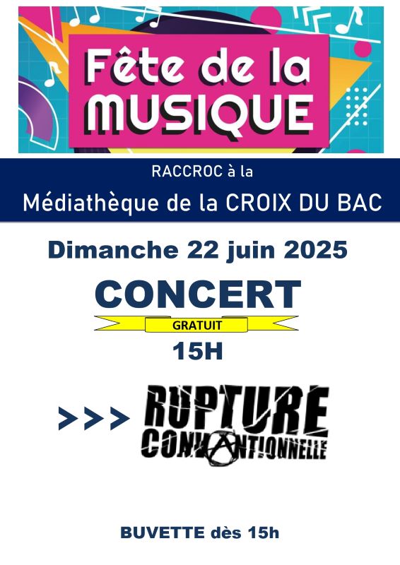 un bon moment passé avec « rupture convAntionnelle » dans le jardin de la médiathèque…..il a fait beau… de la bonne zizique, des crêpes, des jeux pour tous les goûts bref une bonne après-midi de raccroc !