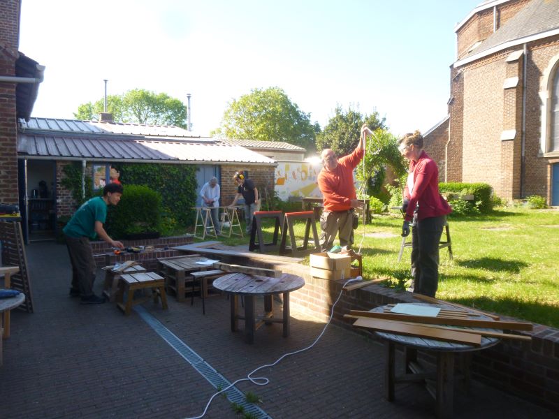 Samedi 10 mai – 9h à 18h : réalisation de meubles. Après le temps de sensibilisation nous proposons de faire une co-conception de meubles. les arrivées en cours de journée pourront se greffer à des projets en cours
