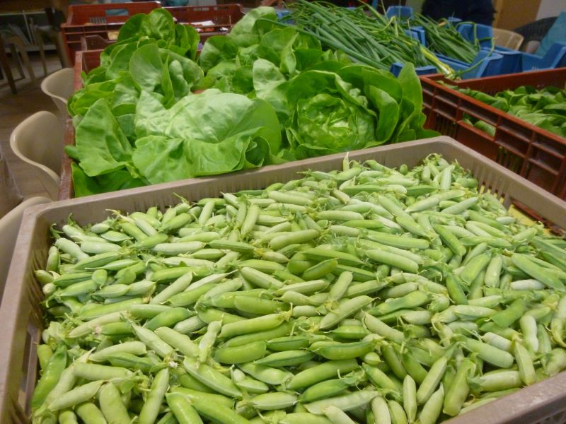 les légumes nouveaux sont de retour… cette semaine petits pois, épinards, carotte, salade, choux rave, fraises, pommes de terre…. de quoi cuisiner, d’échanger sur des recettes, de consulter ou d’emprunter les livres de cuisine… que du bonheur !