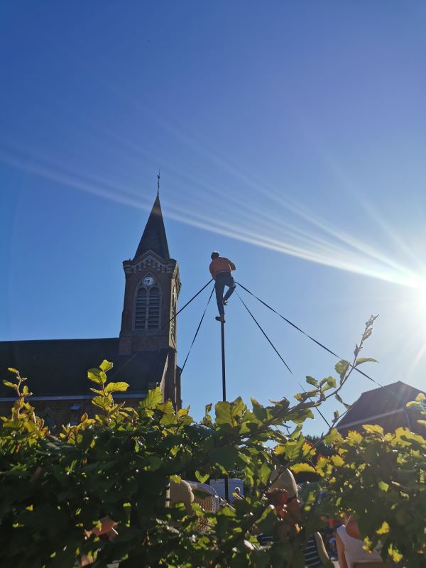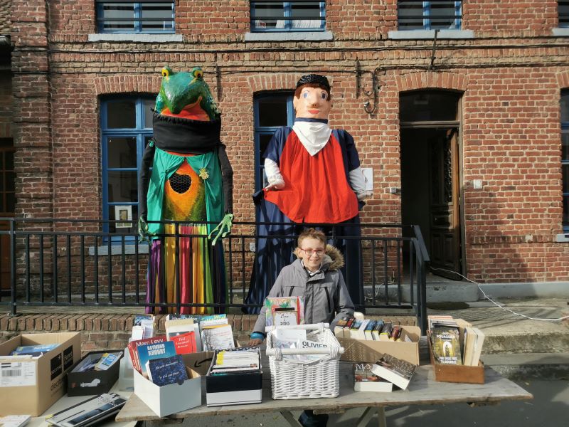 une belle et bonne surprise ! Lucas a conçu un géant … sa première sortie était pour la ducasse accompagné de notre « groette »… dans la brocante et pour accompagner le concert de l’harmonie