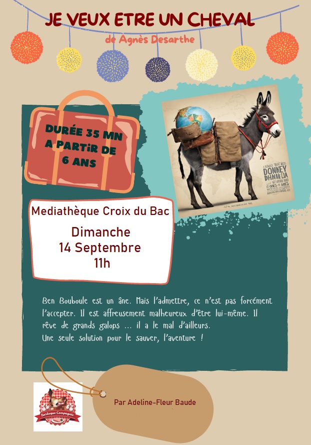 dimanche 14 septembre lecture d’après le livre d’Agnès Desarthe » je veux être un cheval » par Adeline-Fleur Baude