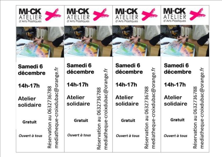 Afin de démarrer la collecte de produits de première nécessité pour les personnes sans-abri, MI-CK artiste engagé propose un atelier artistique et solidaire le samedi 6 décembre de 14h à 17h / tout public