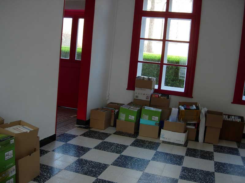 31 bénévoles ont assuré le déménagement dans la semaine du 24 au 31 juillet 2006…grâce à eux la médiathèque n’a pas fermé, l’ouverture a pu se faire le dimanche suivant !! un sacré bazar !!