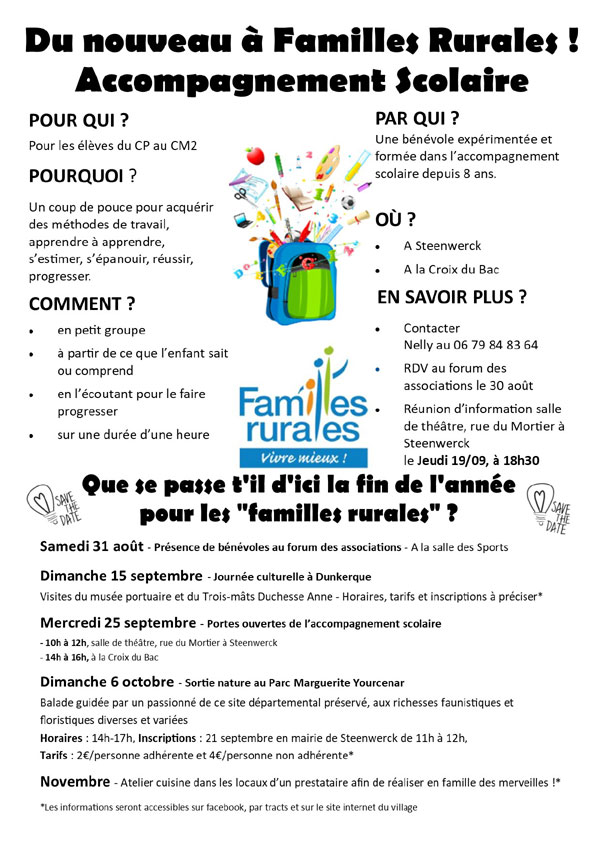 Pour la Croix du Bac, l’accompagnement scolaire se fera à la Médiathèque, plus de renseignements incessamment sous peu !