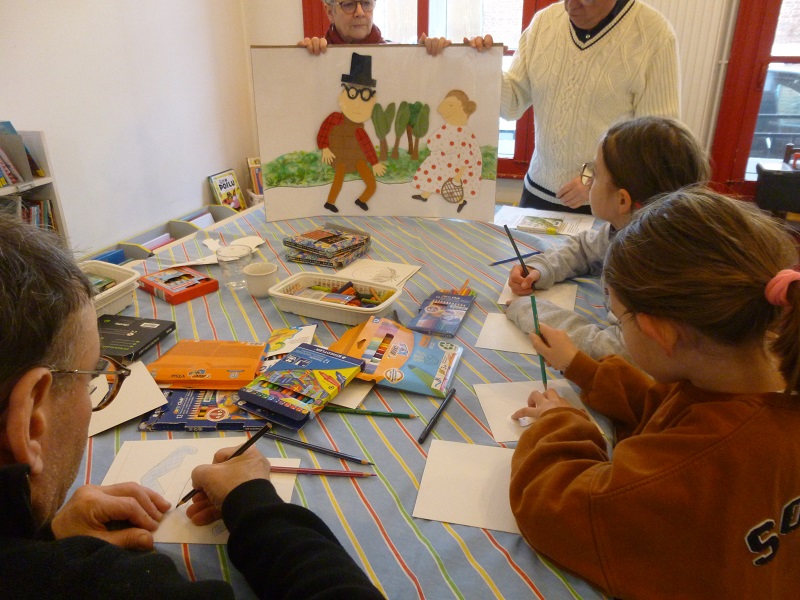 le dimanche 5 mai Muriel Douru, illustratrice et auteur dans le cadre du CLEA , était à la médiathèque pour un atelier dessin » dessine moi ta famille » c’était gratuit et ouvert à tous, 6 enfants et ‘ adultes ont répondu présents….