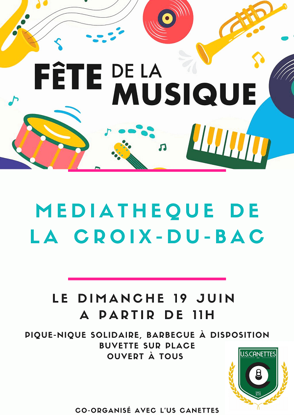 Les US Canettes et la médiathèque de la Croix du Bac se réunissent de nouveau pour vous proposer un pique nique musical ce dimanche de fête de la musique!