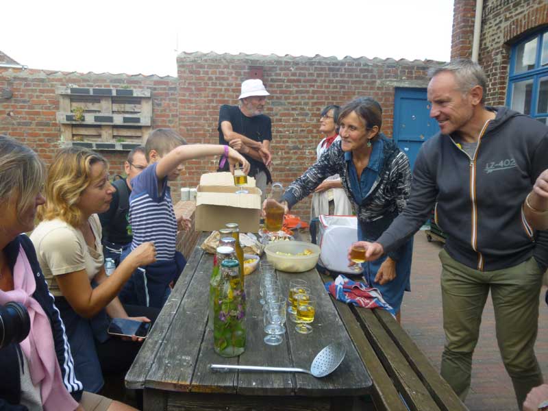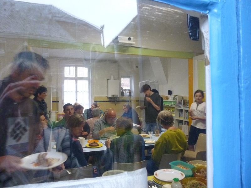 Comme d’hab’, on a terminé par un tiot buffet à la fin du concert… jus de pomme, bière, pain, fromage, et la soupe d’Etienne et Martin. (que du local !!)