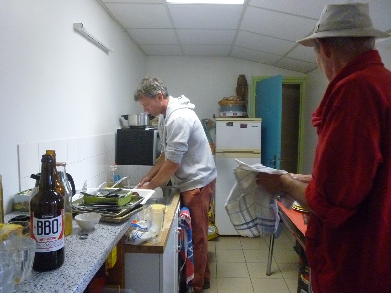 nettoyage et tonte… aie! aie! aie! la pelouse a bien poussé… faut tondre avec notre mini – mini tondeuse manuelle. Il faut du temps et des muscles, heureusement dans l’intervalle, Philippe a prêté la sienne ! à la/les tondeuses : Nico,Ninon, Pierre, Frédérique, Elie, Dominique….