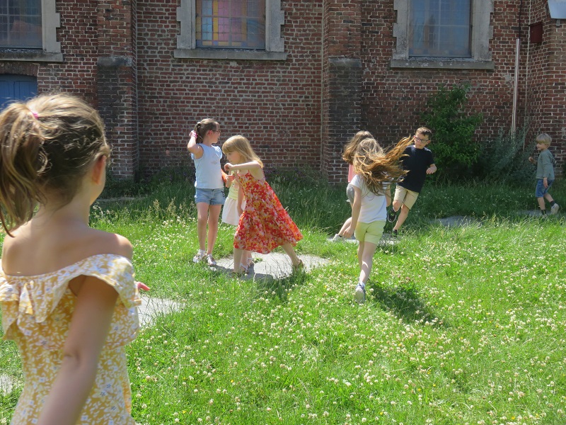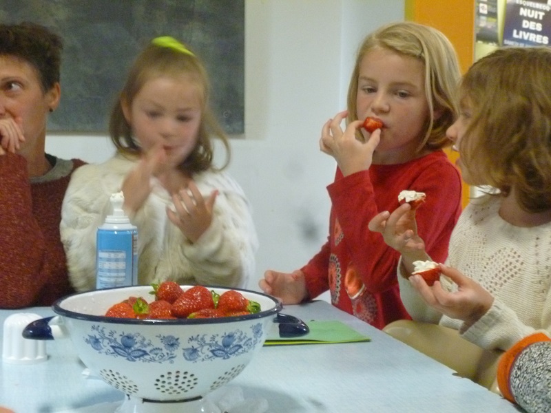 à la base cela devait se faire dans le jardin… mais vent trop violent donc repli salle du temps libre… une petite heure passée avec les enfants de l’école du Tilleul … les enfants ont été participatifs émerveillés, ravis… une heure de bonheur !