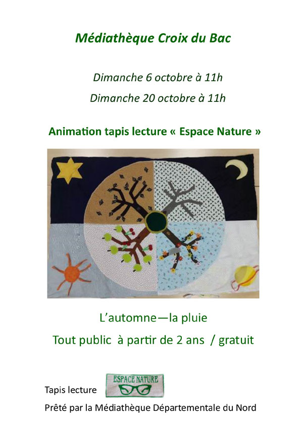 découverte du tapis -lecture : Espace-Nature les dimanches 6 et 20 octobre à 11h… c’était un essai…