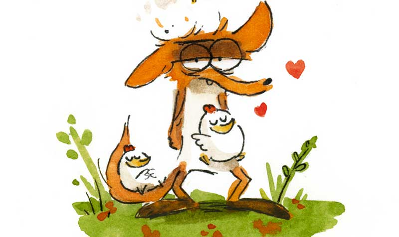 L’équipe de la médiathèque nous demande d’alimenter le site en partageant nos coups de cœur, alors je me lance… Difficile de choisir par lequel commencer, avec tous les disques, films, livres que j’y ai découvert depuis près de 15 ans. Mais la période me donne envie de parler d’une BD et d’un dessin animé (film d’animation pour faire mieux) : « Le grand méchant renard ». Alors, certes, cela semble plutôt destiné à un public jeune, mais franchement, parent, grand parent, oncle, tante, cousin, cousine, grand frère ou grande sœur, on aura tous plaisir à suivre les aventures de ce renard. Il essaie de faire peur aux poules de la basse-cour proche de sa forêt, en prenant exemple sur le loup. Mais rien n’y fait, les poules le chassent systématiquement. Alors avec le loup, ils ont un plan : voler des œufs puis attendre que les futurs poussins grandissent pour les manger. Évidemment, les choses ne se passent pas comme prévu.
