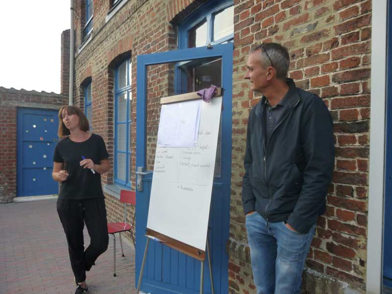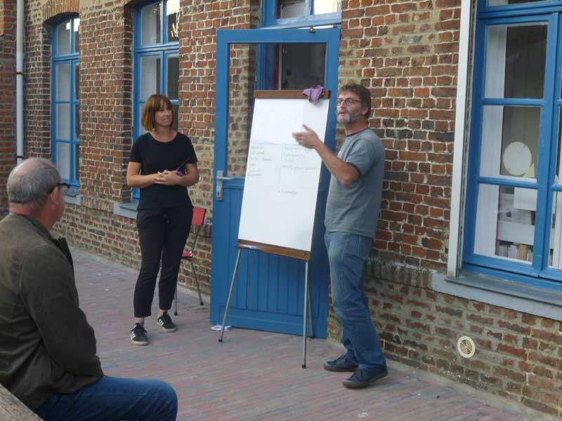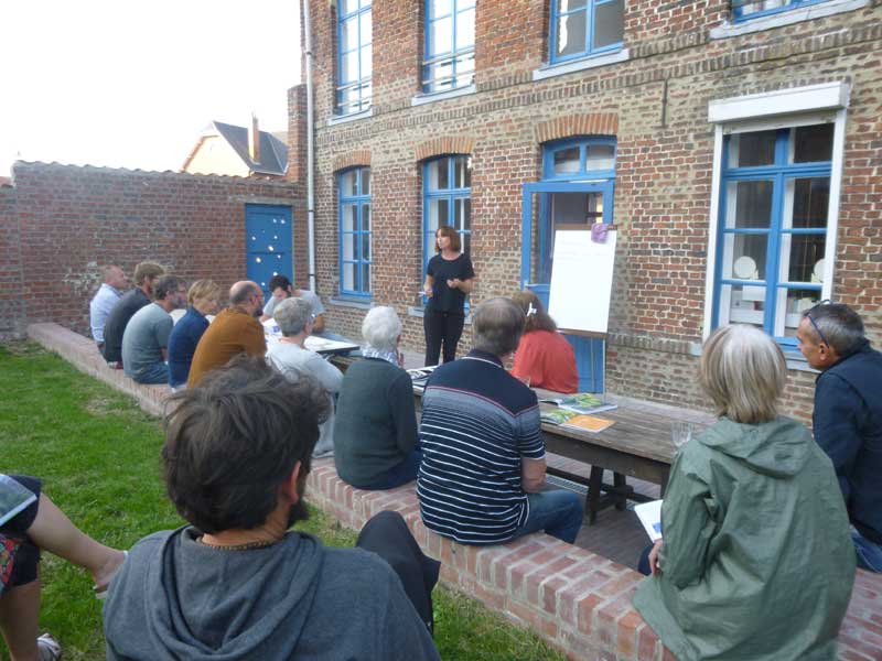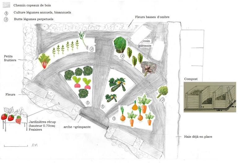 Au delà du résultat à venir, ce sont déjà quelques heures de bons moments passés ensemble. D’abord, il y a eu la 1ère réunion, une fin d’après midi. Réfléchir ensemble à nos envies, nos visions de ce que peut-être ce jardin, de la réflexion individuelle au grand groupe en passant par une réflexion en atelier, et en toute tranquillité, Gwen réussit à reprendre les idées de chacun dans la proposition qu’elle nous fait. Il y aura des courbes, des arrondis, de la verticalité, de place pour la créativité de chacun, les principes de la permaculture, du broyat, des matériaux de récupération.