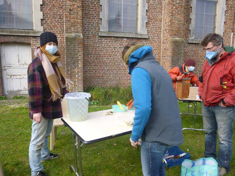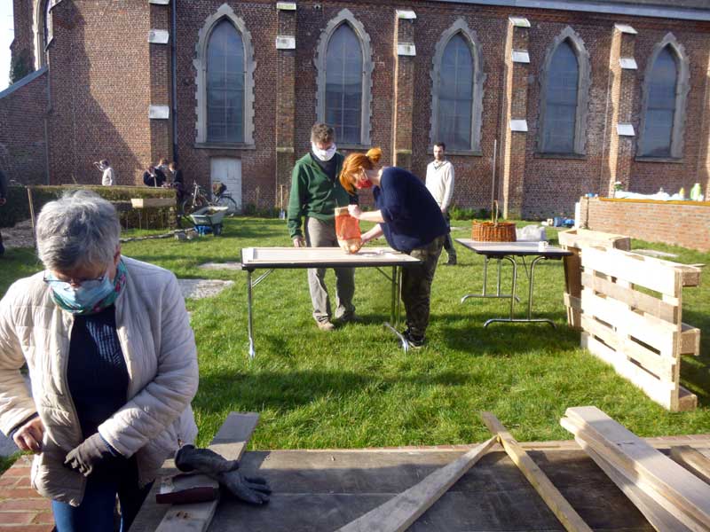 Un premier chantier cet automne, un 2nd au sortir de l’hiver, un 3ème pour fêter dans le froid l’arrivée du printemps, un 4ème qui arrive. Des mains qui travaillent, des langues qui se délient, du café chaud dans la fraîcheur matinale.