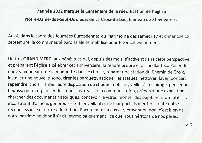 en 1981 la commune de Steenwerck les reçoit à son tour de l’association diocésaine de Lille……pour 1 franc symbolique