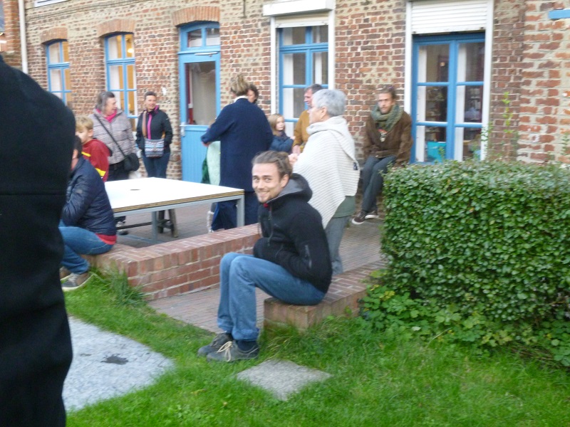 malgré le froid, le vent (heureusement la pluie a cessé de tomber vers 15h!) le spectacle a pu se faire dans le jardin avec une quarantaine de spectateurs bien couverts ! merci aux artistes ! et nous avons terminé par le traditionnel pot de l’amitié