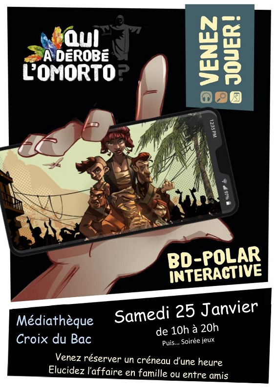 Samedi 25 janvier de 10h à 19h :Réservez un créneau d’une heure en médiathèque pour élucider cette affaire en famille ou entre amis
