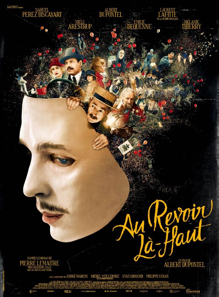 Il y a des rituels qui ne s’expliquent pas, comme celui du film du dimanche soir. Avec toujours ce dilemme : un truc léger pour se vider la tête, au risque de se retrouver devant un gros nanard dont on n’ose pas reconnaître l’avoir vu, ou alors un truc plus intellectuel, on s’en vante même si en vrai, on n’a pas tout compris ou on s’est ennuyé. Et puis il y a ces films qui arrivent à réconcilier nos 2 penchants. « Au revoir là-haut » en fait partie. D’abord, premier élément qui donne envie : un film de et avec Albert Dupontel, forcément, on est en confiance. Le film démarre dans les tranchées en 1918. Dès les premières images, j’ai été impressionné par la photographie, les couleurs vives. Ensuite, l’histoire s’installe, celle d’une arnaque, du genre que l’on cautionne, parce que juste, morale, poétique. Il y a les costumes, le jaune d’Albert Dupontel, une merveille ! Il y a les masques. Celui du lion, avec cette scène de danse, funambule en équilibre entre la gravité de l’après-guerre et la fraîcheur des années folles. Il y a la rencontre entre un père et son fils. Il y a une autre histoire d’un père et de son fils. Il y a tous ces personnages touchants, irritants, inquiétants, rassurants. Il y a la sensibilité d’Albert Dupontel tout au long de ce film. Il suit une vraie aventure romanesque tout en montrant la France des années 1920. Il nous parle d’une époque, il nous parle de corruption, du pouvoir de l’argent, d’une belle amitié, de solidarité.