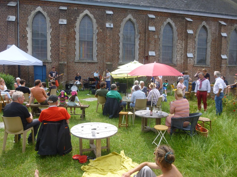 quatre vingt personnes à la fête de la musique dans le jardin…